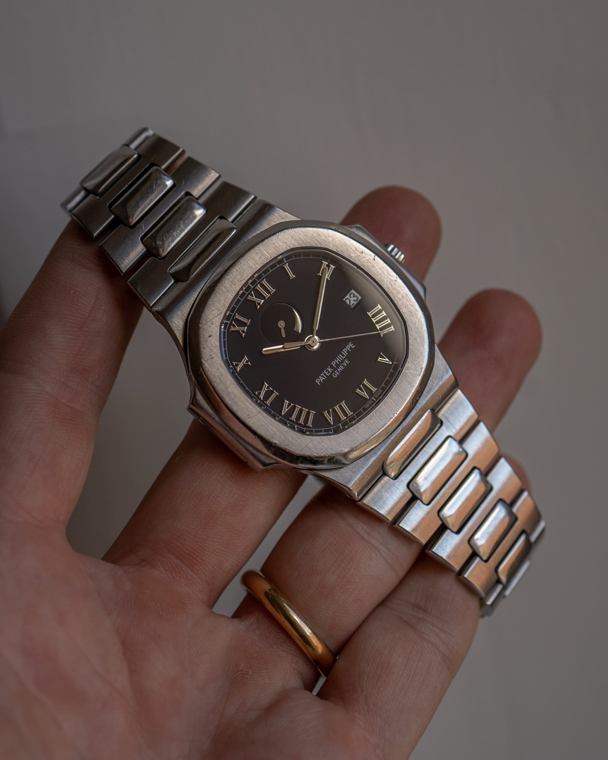 Denna Nautilus ref. 3710/1A från 2000 är en av de mer ovanliga varianterna i serien, med sin gångreservindikator och den svarta tavlan. Denna ”Jumbo” var den första modellen i Nautilusen att ha en komplikation utöver datum och även den första ”jumbon” utöver urfadern 3700. Värt att nämna är att referensen enbart tillverkades i stål. Ett spännande objekt som vi sällan ser på auktion här på hemmaplan!