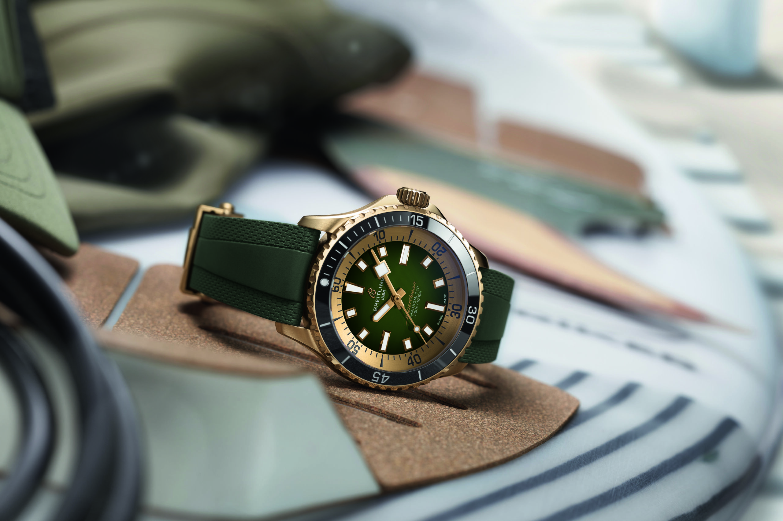 De nya klockorna i SuperOcean-kollektionen återfinns i 4 storlekar – 46, 44, 42 och 36mm med tre olika materialval – stål, stål/guld och brons. Klockorna kommer att levereras på antingen länk i stål eller gummiarmband där viklåsen är utrustade med en efterlängtad microjustering om 15mm. Urtavlorna erbjuder en hel del olika färger, från svart och blått till orange och turkos.
