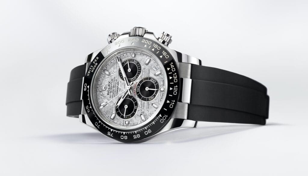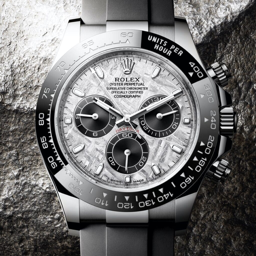 Det är inte Rolex första modell som innehåller en bit från yttre rymden. Vi har tidigare sett Daytonas, Datejust och Daydate samt GMT Master ll med urtavlor i meteorit. Nästan alla har kommit från den meteorit som 1838 hittades i Namibia. Och Jaeger-LeCoultre, Piaget, Corum, Omega, Arnold & Son, de Bethune och Bovet är bara några av de många andra varumärken som använt sig av det sägenomspunna materialet. Det meteorit-material som i de flesta fall används kommer från ett par stora och mycket välkända meteoriter. Gibeon-meteoriten som hittades i Namibia och Muonionalusta-meteoriten som hittades i Sverige.