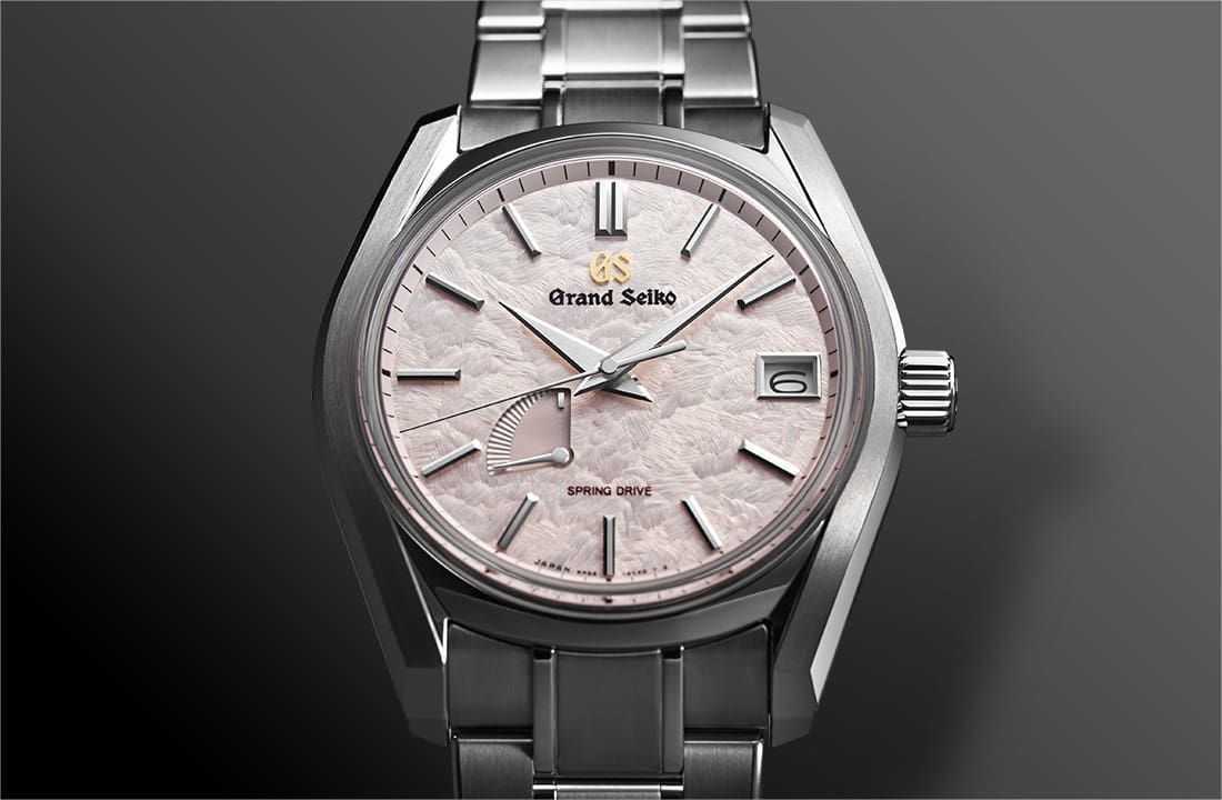 Grand Seiko SBGA443, även känd som ”Shunbun”, är en del av märkets Heritage Collection och firar den japanska vårdagjämningen. Urtavlan är inspirerad av ”hanaikada” – de rosa blombladen från körsbärsträd som flyter på vattnet efter att ha fallit. Den subtilt texturerade, grårosa tavlan fångar denna poetiska scen och skapar en levande känsla av naturens övergång. Boetten är tillverkad i titan, vilket gör klockan både lätt och slitstark. Med en diameter på 40 mm och en höjd på 12,8 mm erbjuder den en balanserad närvaro på handleden. Även denna modell har Spring Drive-verket 9R65.