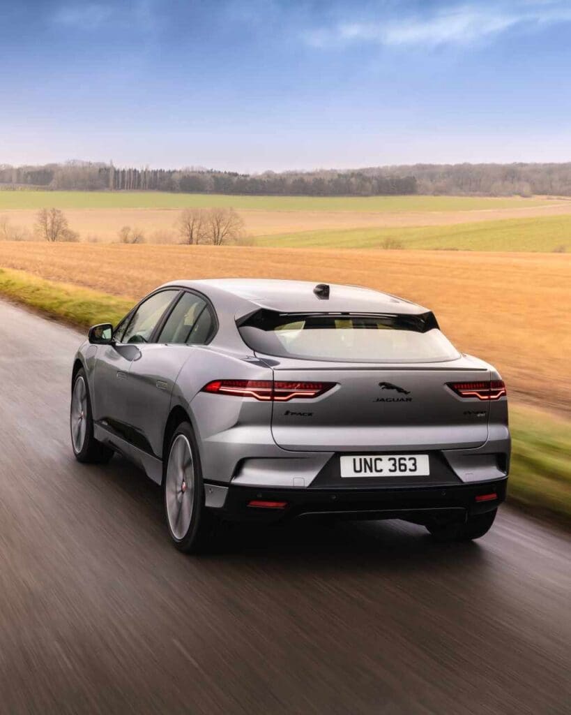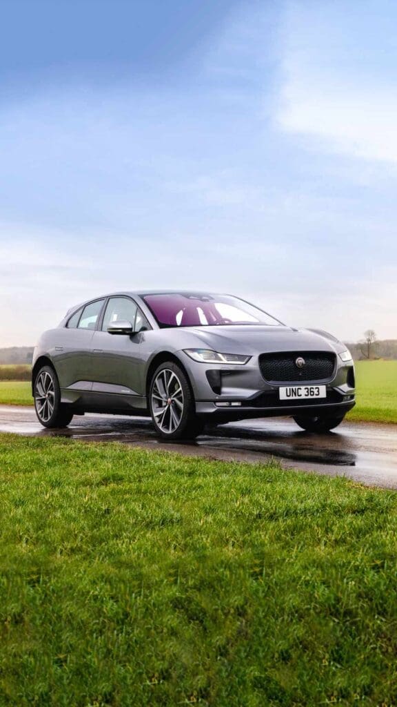 Jaguar av betydligt mer klassiskt snitt än den testade modellen. I typisk miljö. Foto: Magnus Larsson Det betydligt modernare testobjektet Jaguar Ipace. Foto: T. Denke