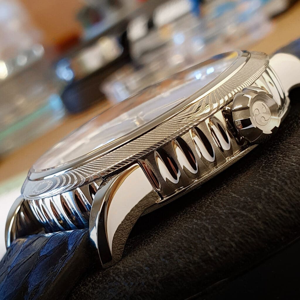 Northern lights är en relativt ny modell från GoS Watches. Urtavlan har ett guilloché-mönster som är format likt hur norrsken rör sig på himlen. I originalutförande är urtavlan i grönt mönster precis som norrsken, men i det här limiterade släppet går färgerna i blått och gult likt Ukrainas flagga. Mer information om basmodellen hittar ni på Eqotime.