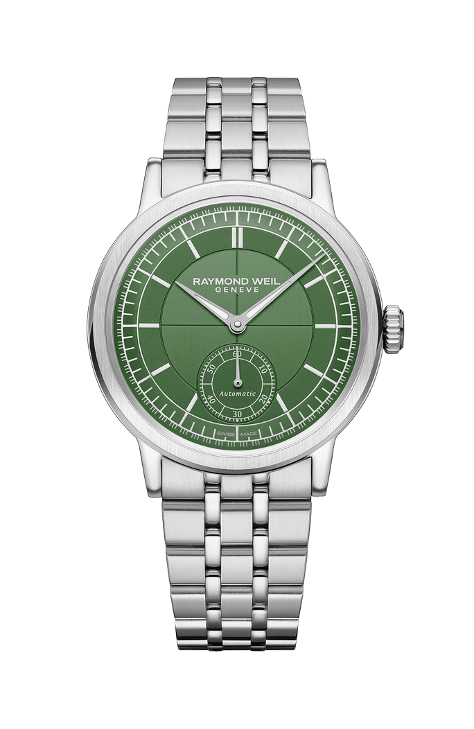 Boetten i stål mäter 39 millimeter och är relativt slank, vilket gör den lättburen även under manschetten. Inuti sitter ett automatiskt verk baserat på Sellita med cirka 41 timmars gångreserv. Det är inte haute horlogerie, men det är heller inte ambitionen. Millesime handlar snarare om designvärde per krona, om att erbjuda klassiska proportioner och vintagekänsla i en prisklass som är tillgänglig för fler. Det är också tydligt hur Raymond Weil positionerar sig i dagens trend mot mindre och mer återhållsamma klockor. I en tid när 36–39 millimeter åter blivit norm snarare än undantag känns Millesime Small Seconds helt rätt i tiden. En klocka som lika gärna kan bäras till smoking som till stickad tröja och flanellbyxor.