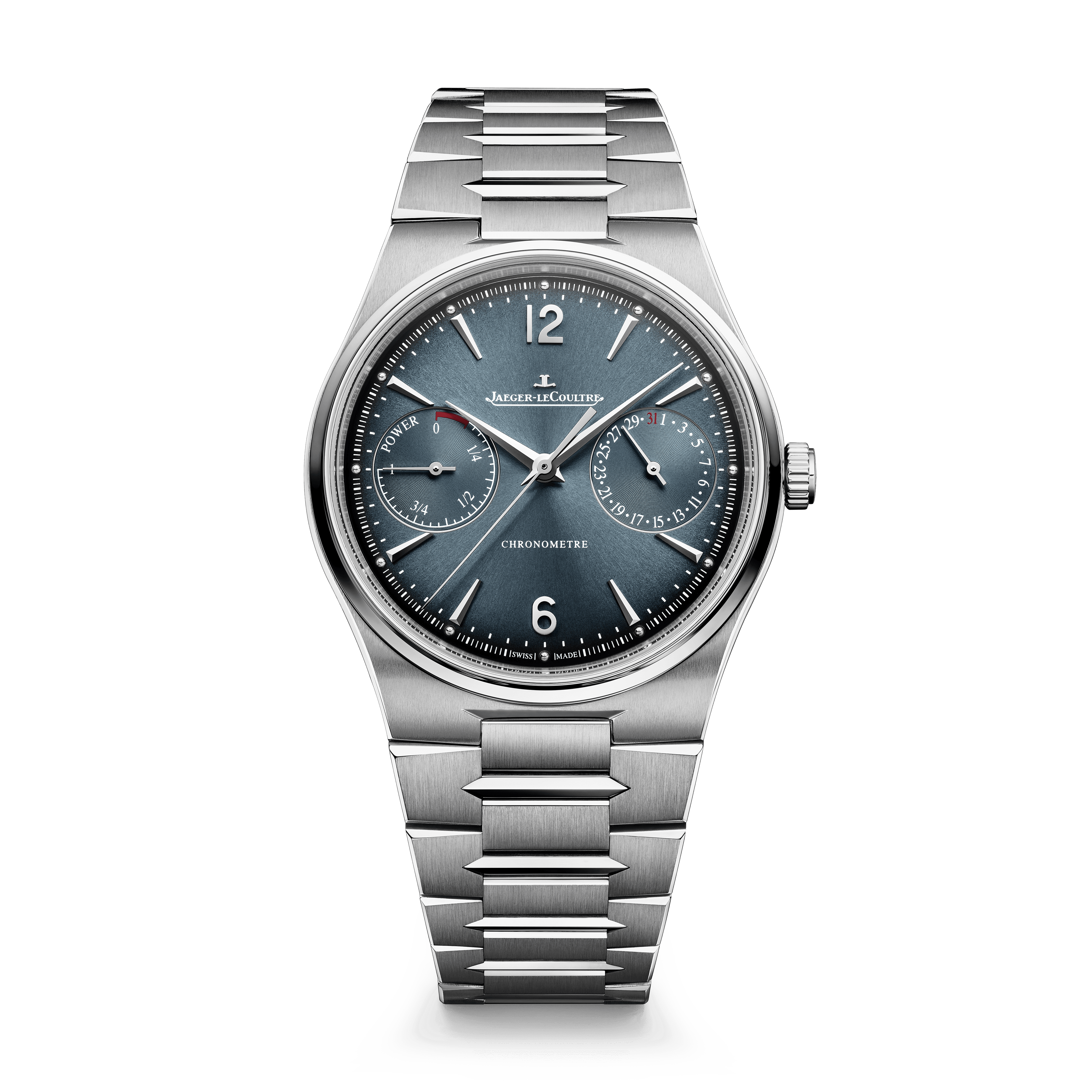 Med inspiration från Futurematic från 1951 presenterar Jaeger-LeCoultre en modell där funktion möter historia. Den dubbla subdial-layouten ger ett distinkt uttryck, där gångreserv och datum accentueras med subtila röda detaljer.