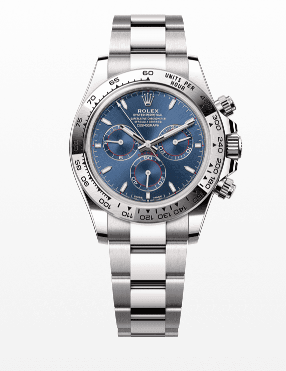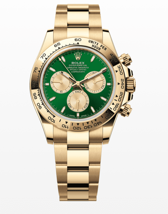 Det släpps ett antal nya versioner av Daytonan, en i vitguld och blåtavla, en i gultguld med gröntavla och en Oysterflex i gultguld och turkostavla. Det har även kommit en bruntavla och meteorit-tavla till flera av modellerna. Listpriser, 615 000 SEK, vitguld, 573 000 SEK, gult guld, 442 600 SEK, Oysterflex turkos.
