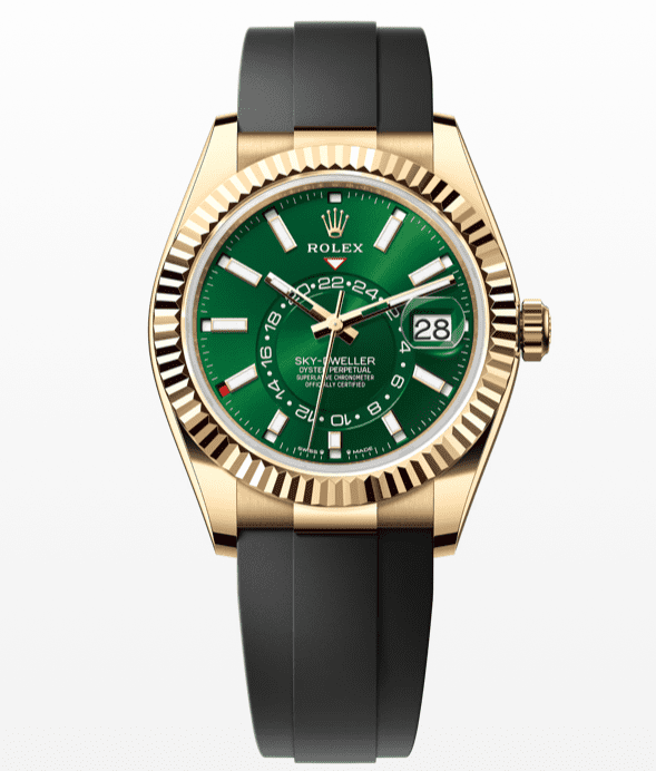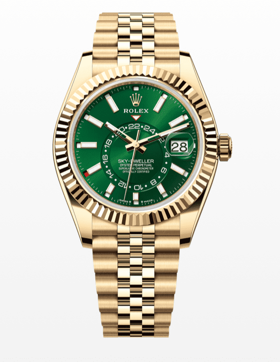 Sky-Dweller fick en snygg uppdatering med en ny grön urtavla för Yellow Gold-modellen både på Oysterflex-armband och helgulds versionen. Med tanke på Sky-Dwellers konsekventa dragningskraft bland samlare som uppskattar teknisk komplexitet och lyx, kommer denna subtila uppdatering sannolikt att stärka modellens marknadsposition. Listpris 666 000 SEK (helguld), 557 800 SEK (Oyster).